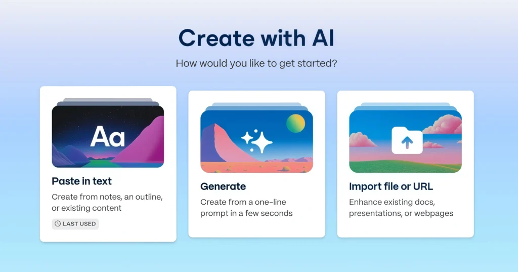 Using Gamma for PPT making is so simple, you can just follow below given steps to use it properly.